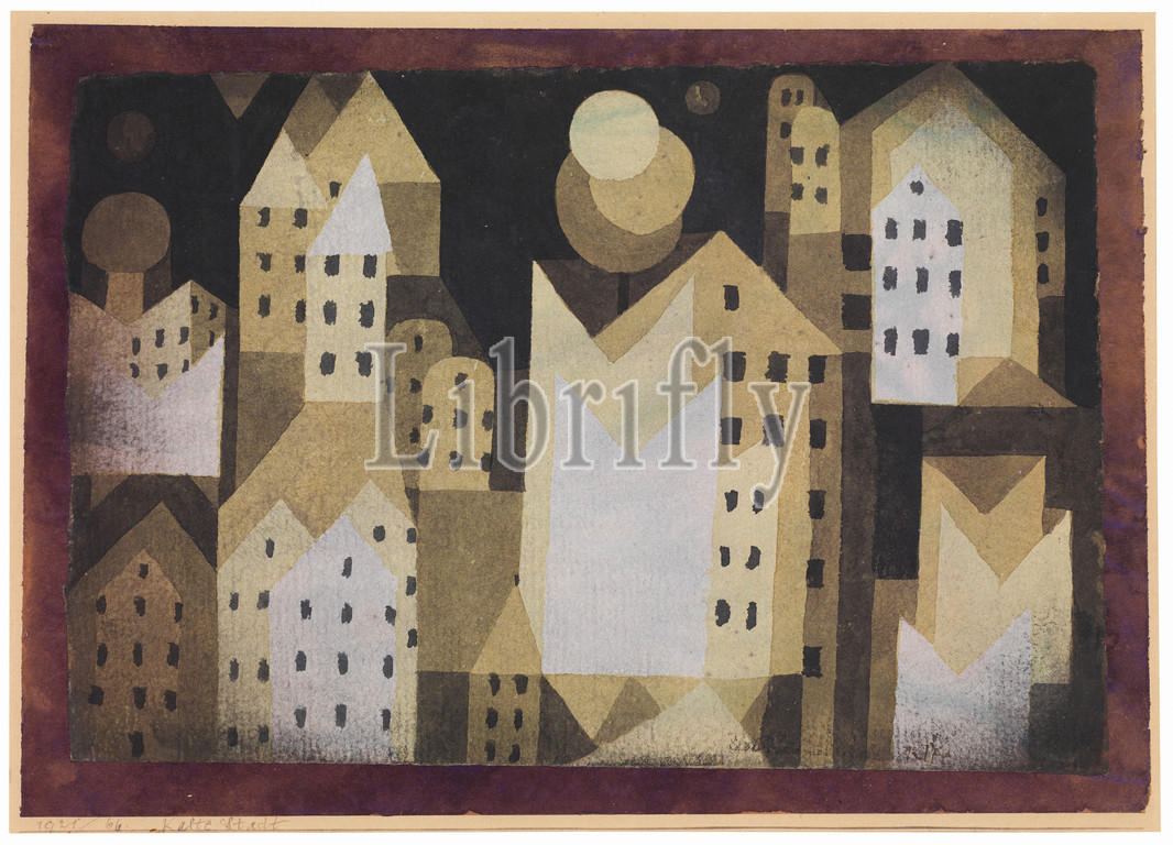 Cold City, 1921, Watercolor on paper mounted on maroon paper mounted on cardboard, 10 5/8 × 14 3/8 in. (27 × 36.5 cm), Drawings, Paul Klee (German (born Switzerland), Münchenbuchsee 1879–1940 Muralto-Locarno)