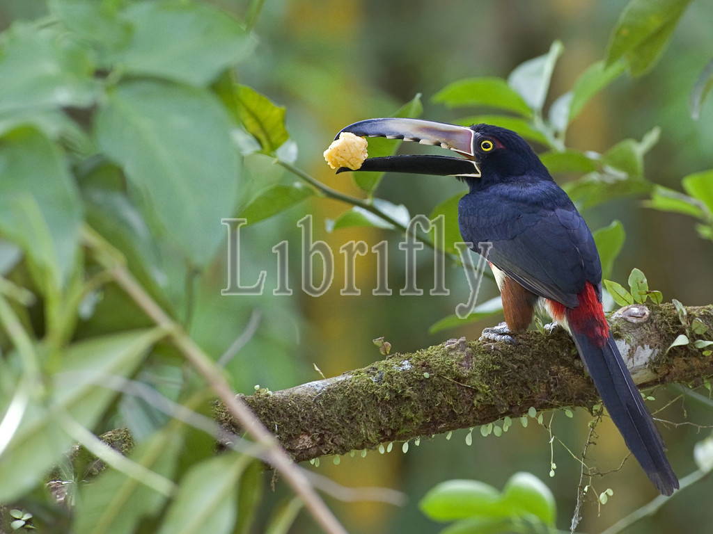Collared Aracari with food, Pteroglossus torquatus