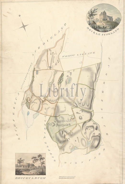 Collection, Surveys, Scottish Estates, Earl, Selkirk, Meikle Sypeland, Brockcleugh, Graphite, watercolor, pen, black ink, slightly textured, moderately thick, cream wove paper, Sheet, architectural subject