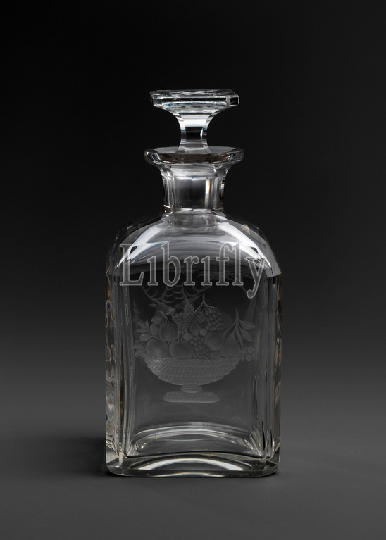 Cologne decanter, 1876, East Cambridge, Massachusetts, United States, American, Glass, cut, engraved, H, 9, 22.9 cm, Louis Friedrich Vaupel, 1824–1930, skilled glass, engravers, working, third quarter, nineteenth century, Trained, Germany, Vaupel immigrated, America, 1850, work, New England, Company, quickly, designer, head, engraving shop