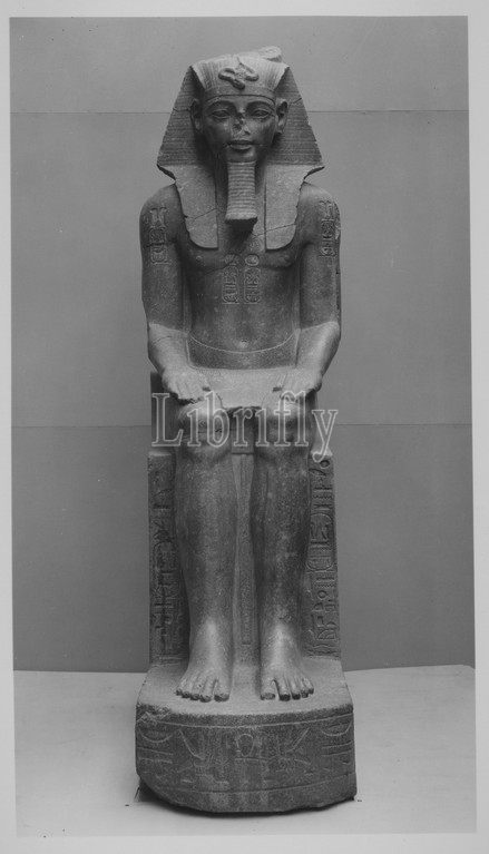 Colossal Seated Statue, Amenhotep III, Reinscribed, Merneptah, New Kingdom, Dynasty 18, ca, 1390–1353 B.C, Egypt, Upper Egypt, Thebes, Luxor, el-Uqsur, Luxor Temple, Eastern Portal, Porphyritic diorite, H, 228 cm, 89 3/4, colossus, distinctive facial, features, recognizable, damaged state, adorned, temple, built, Amen-Re, ancient Thebes
