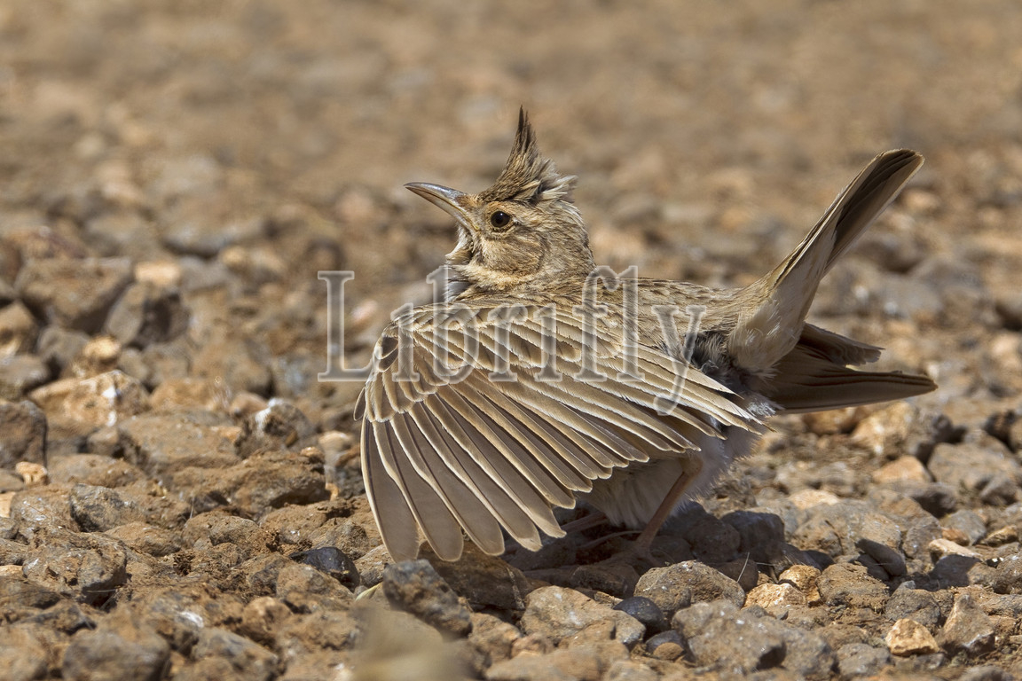 Common Crested Lark singing and displaying, Galerida cristata