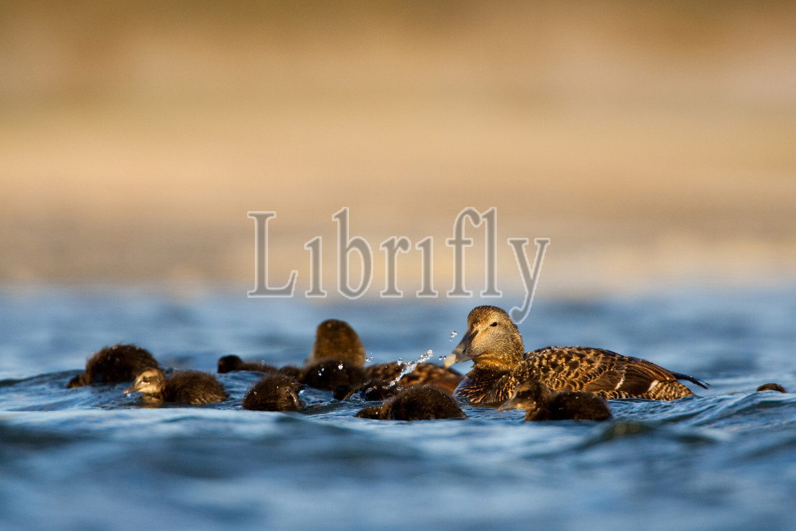 Common Eiders with young, Somateria mollissima