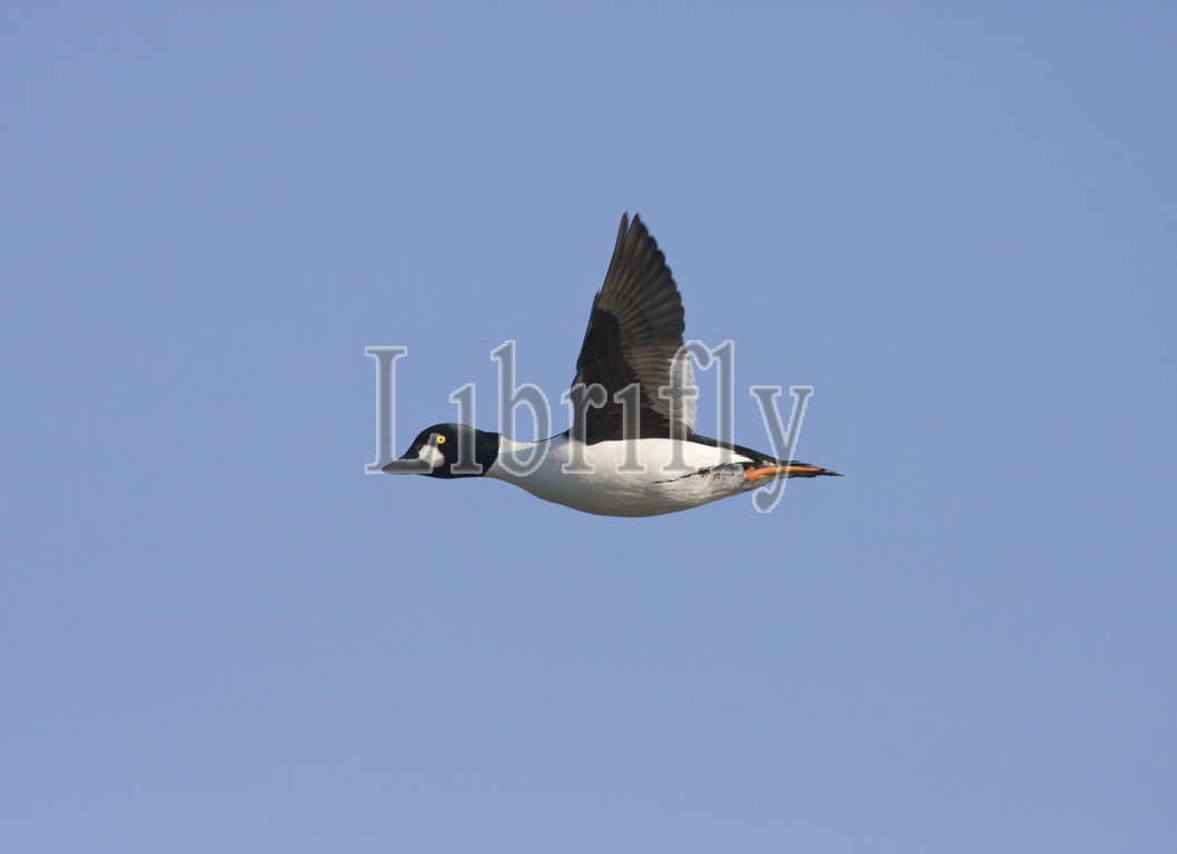 Common Goldeneye in flight, Bucephala clangula, Netherlands