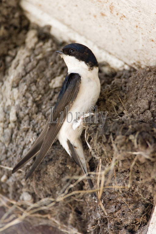 Common House Martin on nest, Delichon urbicum
