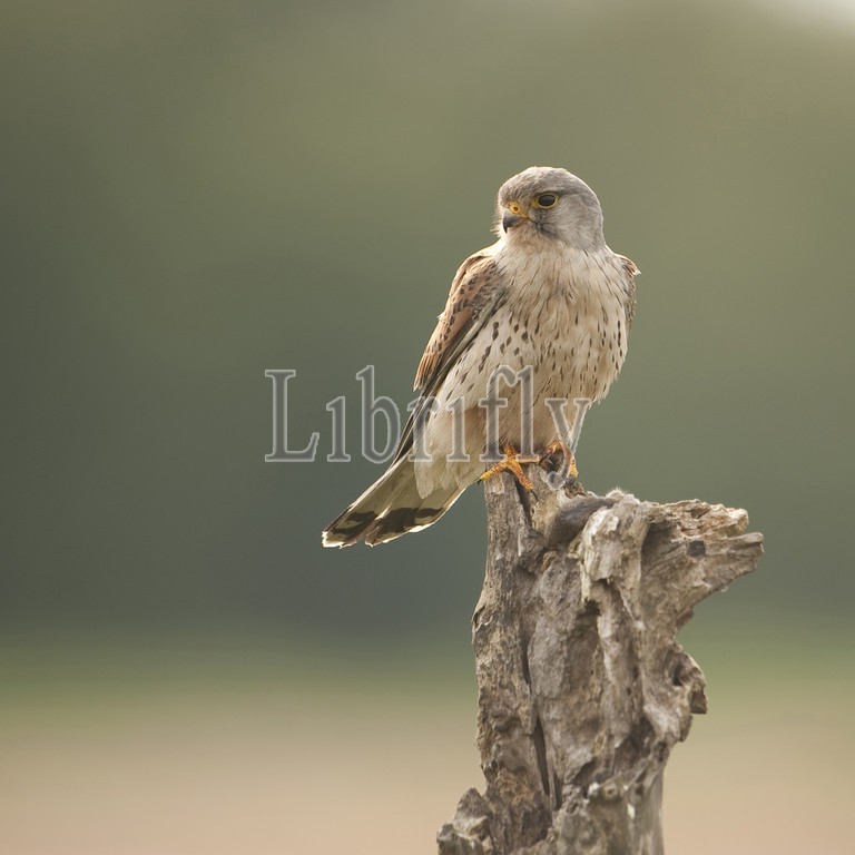 Common Kestrel perched on pole, Falco tinnunculus, The Netherlands