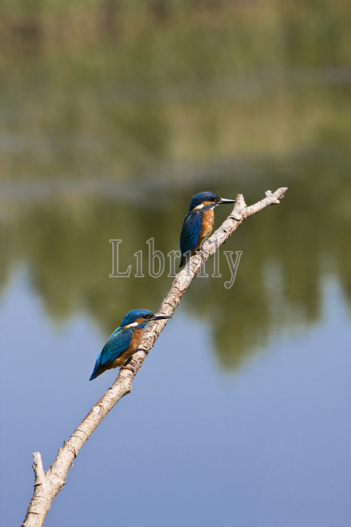 Common Kingfisher two birds on branch, Alcedo atthis, Netherlands