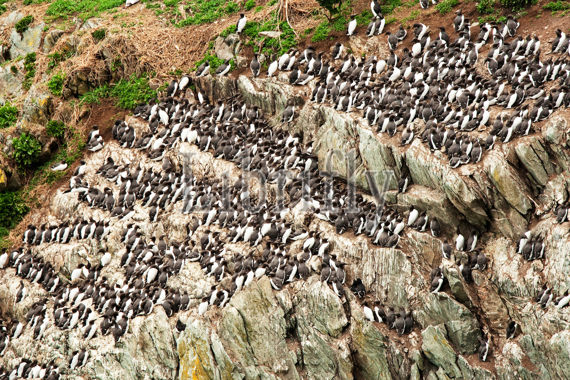 Common Murres in colony on cliff, Uria aalge