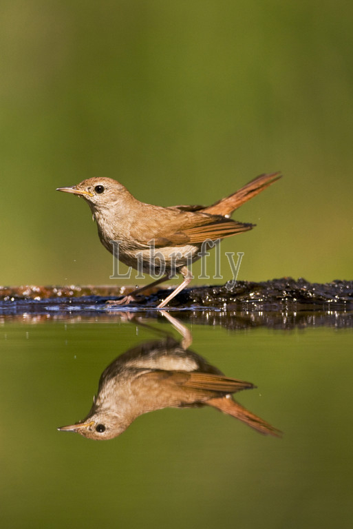 Common Nightingale at drinking site, Luscinia megarhynchos