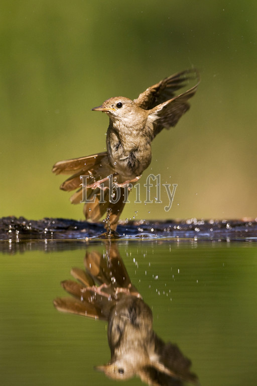 Common Nightingale at drinking site, Luscinia megarhynchos