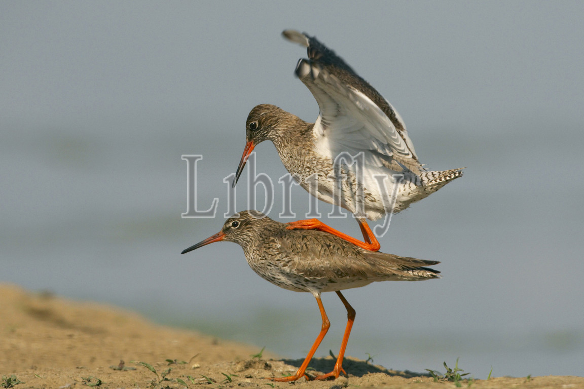 Common Redshanks mating, Tringa totanus