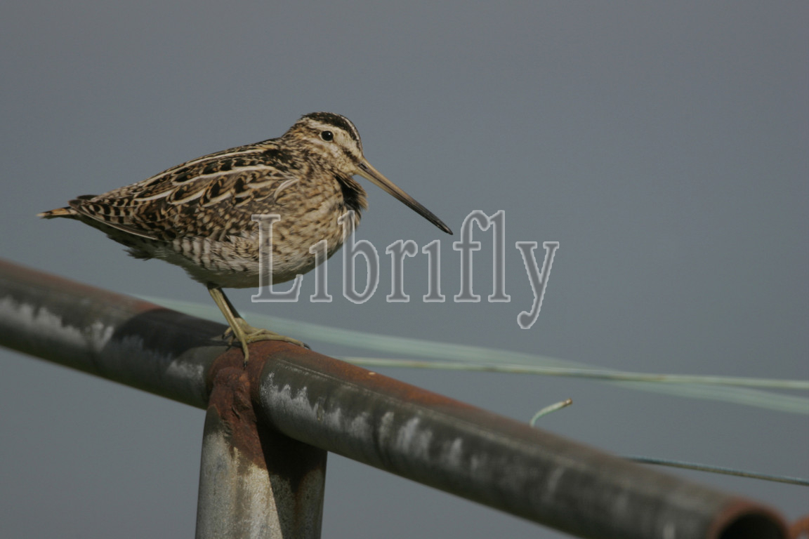 Common Snipe on a fence, Gallinago gallinago