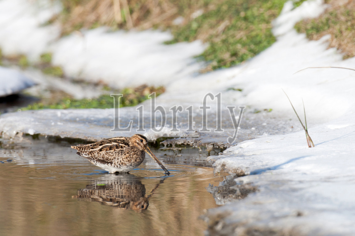Common Snipe foraging in open water, Gallinago gallinago