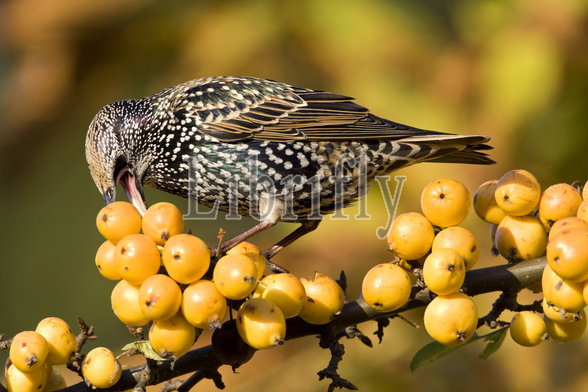 Common Starling feeding on berries Netherlands, Sturnus vulgaris, Netherlands