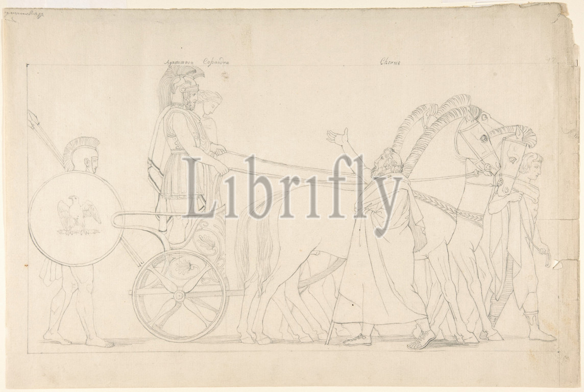 Composition, Tragedies, Aeschylus, plate 17, recto, Goddess Statue, Suppliants, 7, verso, 19th century, Graphite, Sheet, 10 3/8, 15 11/16, 26.3, 39.8 cm, Drawings, After John Flaxman, British, York, 1755–1826, London