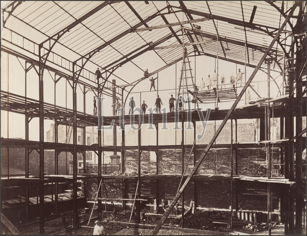 Construction Site, 1880s, Albumen silver print, glass negative, Image, 36.8 x 47.8 cm, 14 1/2 18 13/16, Photographs, Louis Lafon, French, active, 1870s–90s, urbanization, projects, nineteenth-century France, photography, record, ornamental details, building, exterior, progression, construction, Lafon mastered, type, industrial imagery, pursuit, awarded, medal, 1874 exhibition, Société française, de, photographie