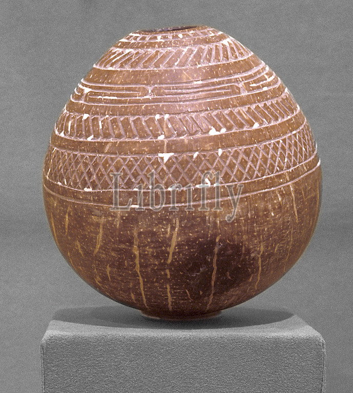 container, lime, 1940-1960, coconut shell, pigment, 4-3/4 x 5-1/2 x 5-1/2, South Pacific Art