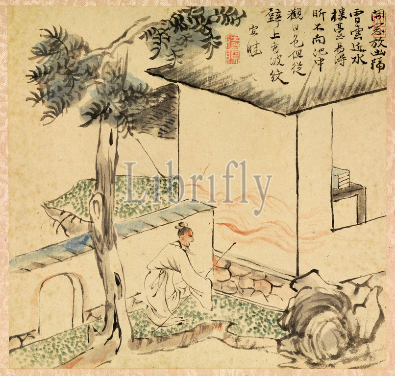 'Convenience in Drawing Water' from Jūben (Ten Conveniences); 'Pleasure of Dawn' from Jūgi (Ten Pleasures), Edo period (1615–1868), 1800, Japan, Two albums, each with ten leaves; ink and color on paper, Image (each leaf): 7 3/8 × 7 5/8 in. (18.8 × 19.4 cm), Paintings, Totoki Baigai (Japanese, 1749–1804)