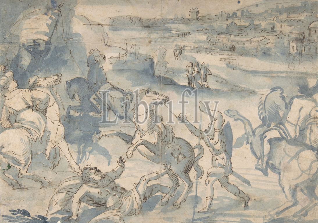 The Conversion of St. Paul, 16th century, Pen and brown ink, brush and blue watercolor, sheet: 9 1/16 x 13 in. (23 x 33 cm), Drawings, Melchior Bocksberger (Austrian, Salzburg ca. 1530–1587 Regensburg)