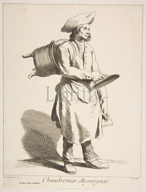 Coppersmith from Auvergne, 1737, Etching with some engraving, Sheet: 9 5/16 x 7 in. (23.6 x 17.8 cm), Prints, Anne Claude Philippe de Tubières, comte de Caylus (French, Paris 1692–1765 Paris), After Edme Bouchardon (French, Chaumont 1698–1762 Paris)