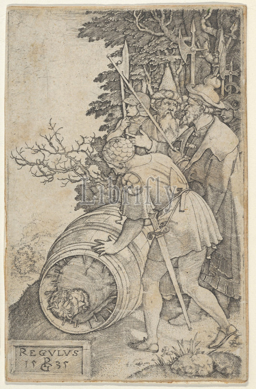 Copy, Attilius Regulus, Roman Heroes, Engraving, Sheet, 4 5/8, 2 15/16, 11.8, 7.5 cm, Prints, after Georg Pencz, German, Wroclaw ca., 1500–1550, Leipzig