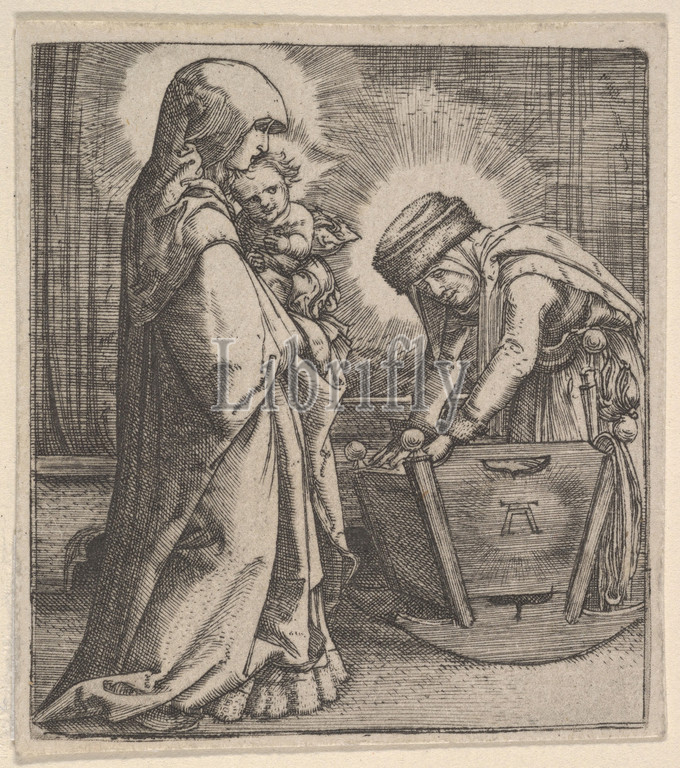 Copy, Virgin, Child, Saint Anne, Cradle, Engraving, Sheet, 2 1/2, 5/16, 6.4, 5.8 cm, Prints, after Albrecht Altdorfer, German, Regensburg ca., 1480–1538, Regensburg