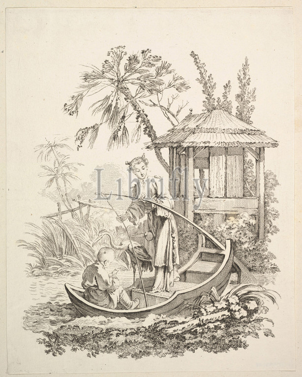 Cormorant Fishing, ca. 1742, Etching and engraving, Sheet (trimmed): 11 7/8 × 9 5/16 in. (30.1 × 23.7 cm), Prints, Gabriel Huquier (French, Orléans 1695–1772 Paris), After François Boucher (French, Paris 1703–1770 Paris)