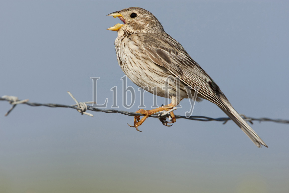 Corn Bunting, barbed wire, singing, Lesvos, Greece, Emberiza calandra, nature, bird, animal, wildlife, wild, fauna, natural, feather, sky, beak, wing, outdoor, freedom, colourful, Liszt, Natural History, ornithology, vertebrate animals, photography, color image