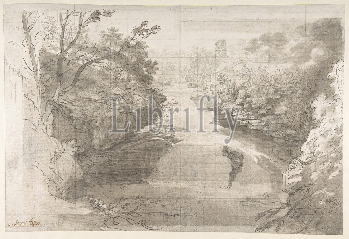 Corra Linn, Falls, Clyde, 1788, Graphite, pen, ink, wash, sheet, 14 1/8 x 20 7/8, 35.9 53 cm, Drawings, Joseph Farington, British, Lancashire, 1747–1821, expressive, working, drawing, Farington centers, upon, Corra, Linn, waterfalls, river Clyde, Lanarkshire, Scotland, linn, Gaelic, falls, squared, transfer, artist, intended, repeat, design, oil, watercolor