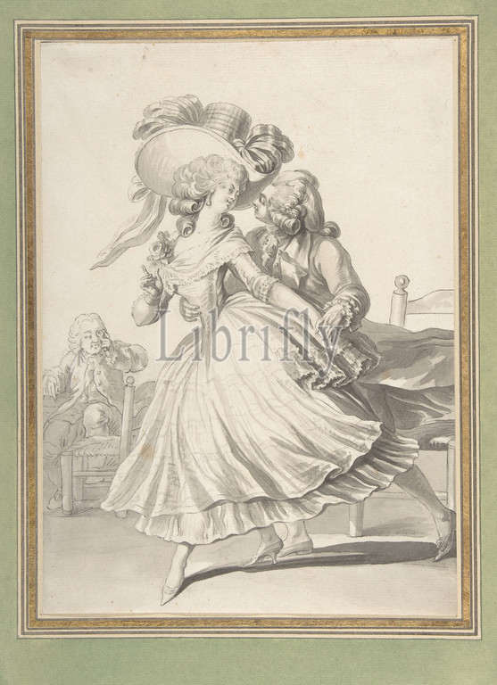 Costume Drawing, Lady, Gentleman Dancing, 1760–1800, Pen, black ink, brush, gray wash, graphite, sheet, 11 9/16 x 8 1/8, 29.3 20.7 cm, Drawings, Attributed to Louis Binet, French, Paris, 1744–1800