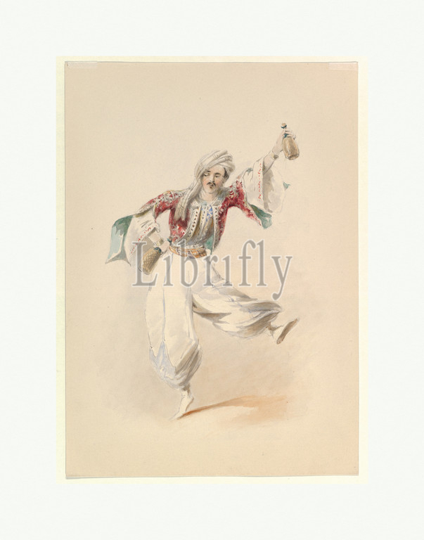 Costume Study, Pedrillo, Abduction, Seraglio, W., Mozart, ca, 1830–50, Watercolor, graphite, gum arabic, Sheet, 11 1/4, 7 15/16, 28.5, 20.2 cm, Drawings, Johann Georg Christoph Fries, German, Nuremberg, 1788–1857, Regensburg