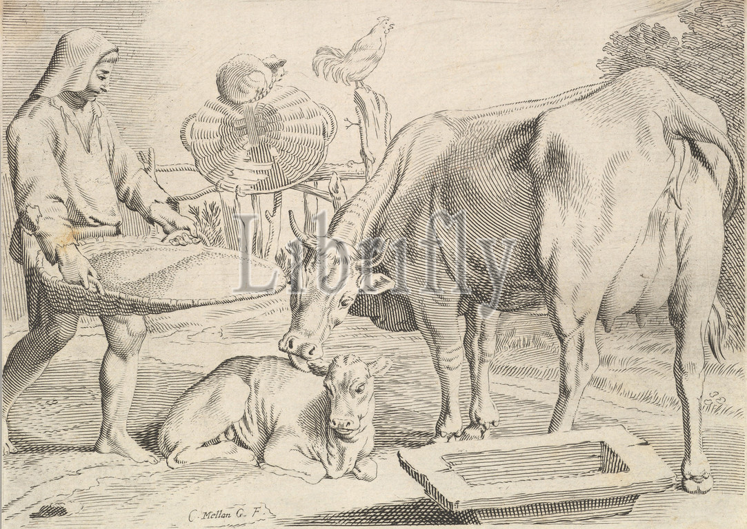 Country Scene, Peasant, Cow, Calf, Engraving, second state, two, sheet, 5 7/8 x 7 5/8, 15 19.4 cm, Prints, Claude Mellan, French, Abbeville, 1598–1688, Paris