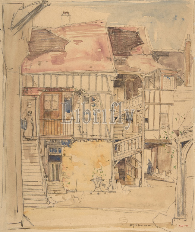 Courtyard, Blois, ca, 1885–1945, Watercolor, graphite, Sheet, 11 3/4, 9 5/8, 29.8, 24.5 cm, Drawings, Sir David Young Cameron, British, Glasgow, Scotland, 1865–1945, Perth
