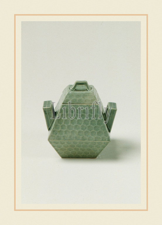 Covered Sugar Bowl, 1879–83, Chelsea, Massachusetts, United States, American, Earthenware, H, 4 1/4, 10.8 cm, Diam, 3 1/2, 8.9, Ceramics, Chelsea Keramic Art Works, 1872–1889, rare, example, domestic tableware, Keramic, Art, Works, exemplifies, taste, Far Eastern, motifs, last quarter, nineteenth century, angular forms, honeycomb surfaces, emulate, shape, hand-hammered texture, Japanese metalwork, reference, designs, Christopher Dresser