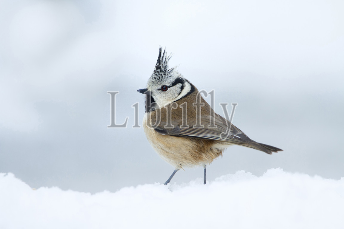 Crested Tit sitting on snow, Netherlands