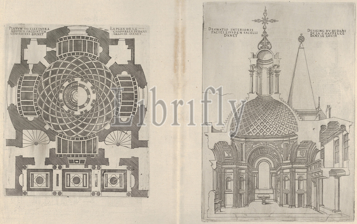 Cross sections of the Chapel at Chateau d'Anet, 1607, Engraving, Sheet: 15 3/4 x 19 11/16 in. (40 x 50 cm), Jacques Androuet Du Cerceau (French, Paris 1510/12–1585 Annecy)