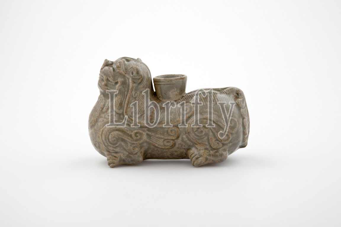 crouching feline, Unknown, Western Jin dynasty, 265-316, stoneware with green glaze, H: 3-15/16 in., Chinese, Asian Art