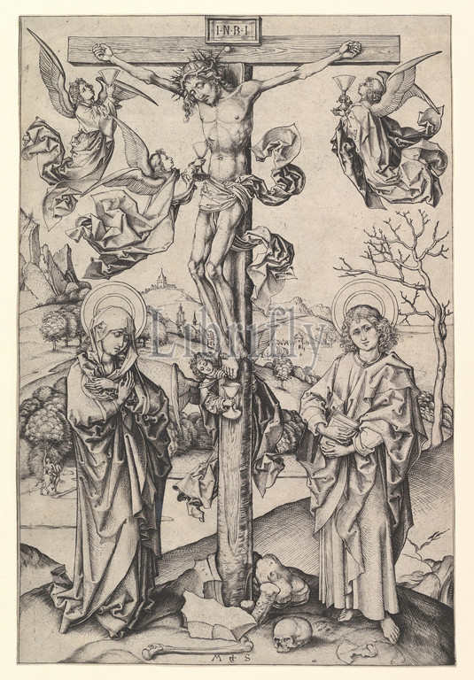 Crucifixion, Four Angels, 15th century, Engraving, 11 1/2 x 7 3/4, 29.2 19.7 cm, Prints, Martin Schongauer, German, Colmar ca., 1435/50–1491, Breisach