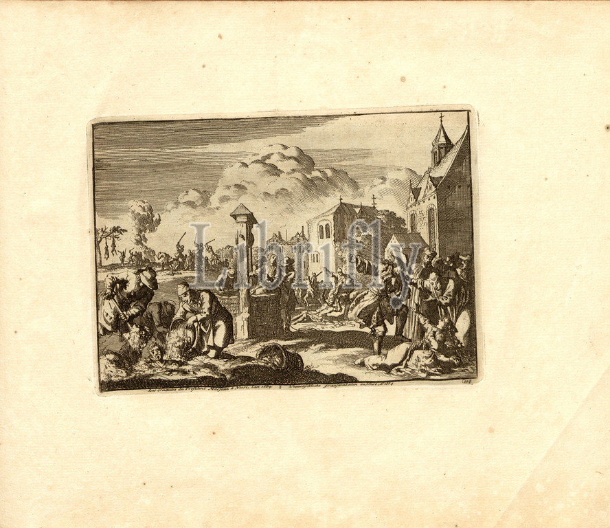 The cruelty of President Marsaut in Niort, the year 1684, Parallel Title: Inhumane Cruelty to Niort A nn o 1684, copperplate engraving, 114.), p. 237, Luyken, Jan (inv. et fec.), Jan Luyken: Théâtre des martyrs: depuis la mort de J.Christ jusqu'à present: représenté en très belles tailles-douces = Schau-Bühne der Martyrer; gezeichnet und in Kuppfer gestochen. Leyde: chez Pierre Van der Aa, [1711]
