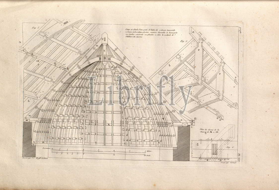Cup, details, part, Church, ci-devant Annonciades, Antwerp, Construction drawing, elevation, roof truss, 19th century church, Antwerp, signed, Dessiné par J.C., Krafft Architecte, Gravé par Vanmael, PL., XIII, p. 27, Krafft, Jean Charles, Van Maelle, 1805, Jean Charles Krafft, Plans, coupes, élévations de diverses productions de l'art de la charpente ex, pays étrangers, A Paris etc., chez l'auteur etc., 1805