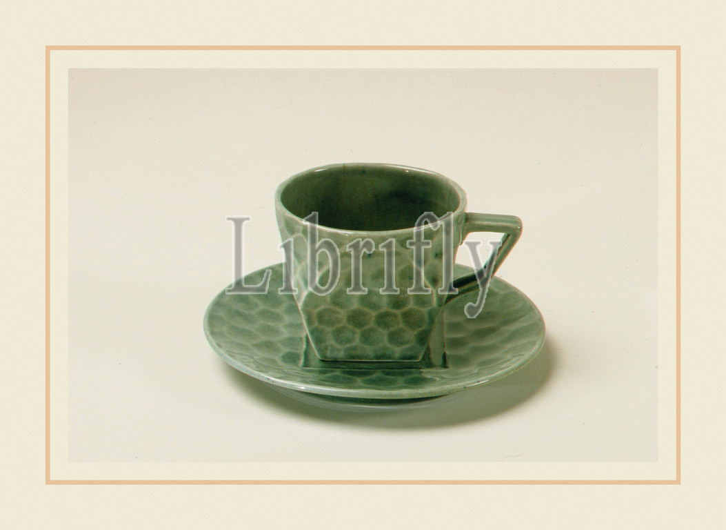 Cup, Saucer, 1879–83, Chelsea, Massachusetts, United States, American, Earthenware, H, 2 1/2, 6.4 cm, Diam, 4 3/4, 12.1, Ceramics, Chelsea Keramic Art Works, 1872–1889, rare, example, domestic tableware, Keramic, Art, Works, exemplifies, taste, Far Eastern, motifs, last quarter, nineteenth century, angular forms, honeycomb surfaces, emulate, shape, hand-hammered texture, Japanese metalwork, reference, designs, Christopher Dresser