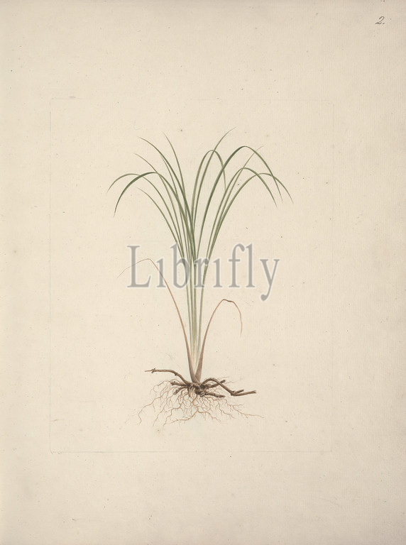 Cyperus species 1: finished drawing of sedge-like plant with roots, Luigi Balugani, 1737–1770, Italian, undated, Watercolor and graphite on medium, slightly textured, cream laid paper, Sheet: 15 15/16 × 12 5/16 inches (40.5 × 31.3 cm) and Binding: 16 1/4 inches (41.3 cm)