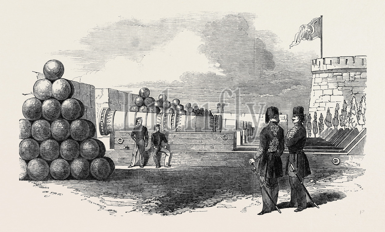 dardanelles, battery, stone, shot, 1850 engraving, engraved image, history, illustrative technique, engravement, victorian, arts, culture, retro styled, vintage, retro, arkheia