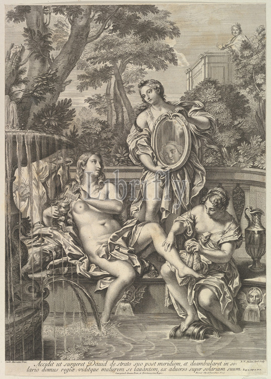 David, Bathsheba, 1680–1743, Engraving, sheet, 21 7/8 x 16, 55.6 40.7 cm, Prints, Robert van Audenaerde, Flemish, Ghent, 1663–1743, After Carlo Maratti, Italian, Camerano, 1625–1713, Rome