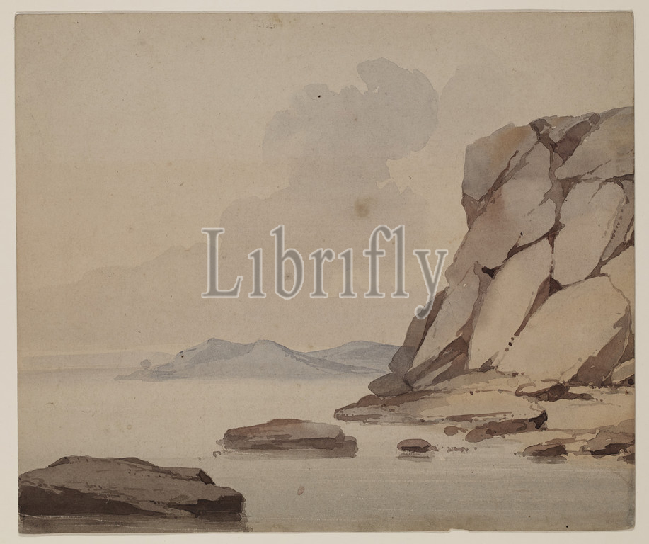 David Claypoole Johnston, American, 1798-1865, Rocky Cliffs, Water's Edge, 20th century, watercolor, pencil, cream wove paper, Sheet, 8