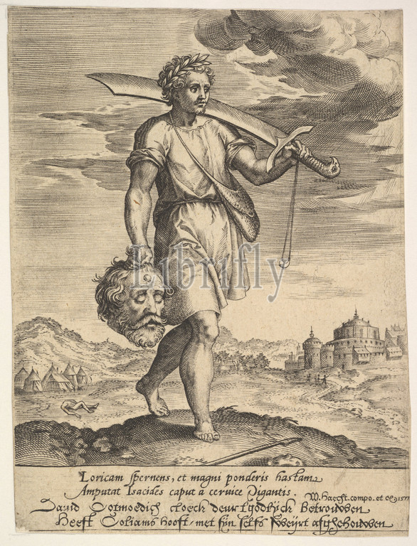 David, Head, Goliath, 1578, Engraving, sheet, 5 1/4 x 3 15/16, 13.4 10 cm, Prints, Hieronymus, Jerome, Wierix, Netherlandish, ca., 1553–1619, Antwerp