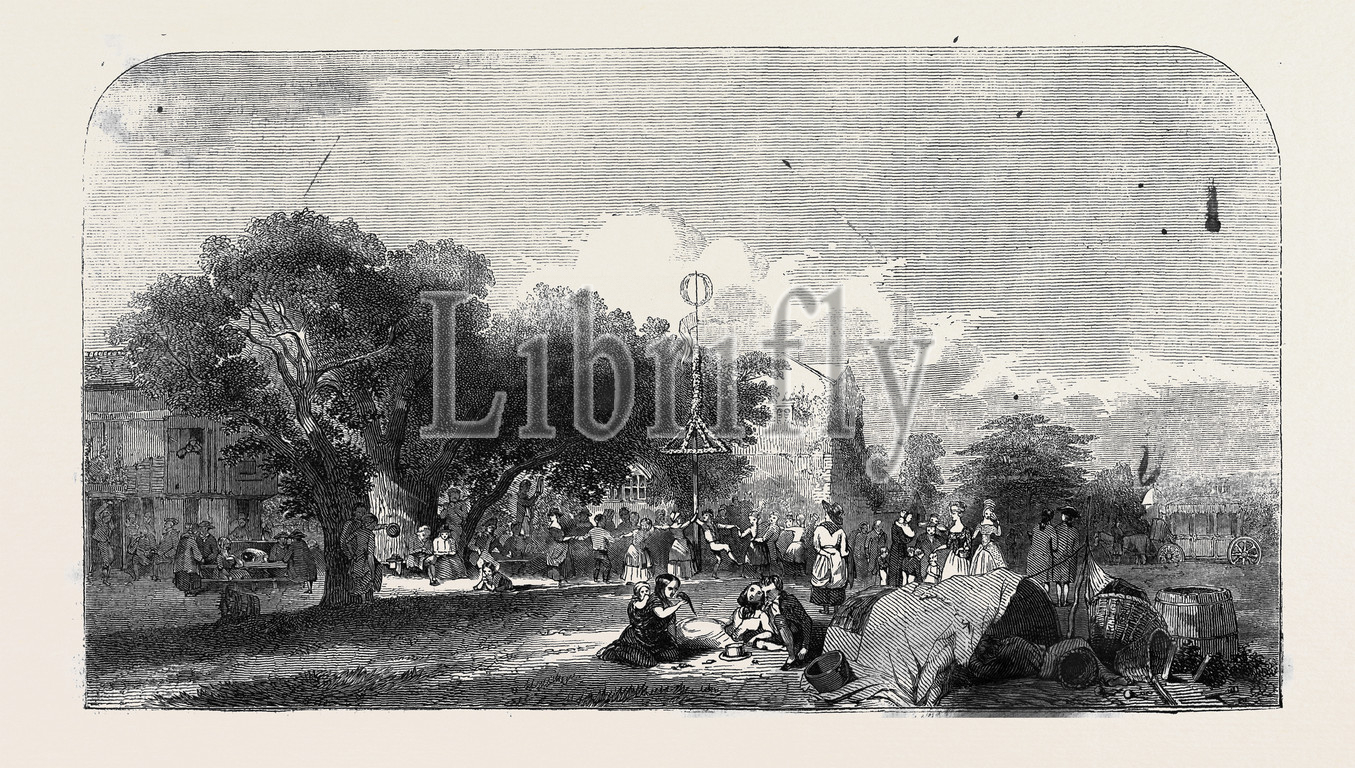 may-day, century, painted, anthony, display of works of art, exhibition, society, british, artists, 1845 engraving, engraved image, history, illustrative technique, engravement, victorian, arts, culture, retro styled, vintage, retro, arkheia
