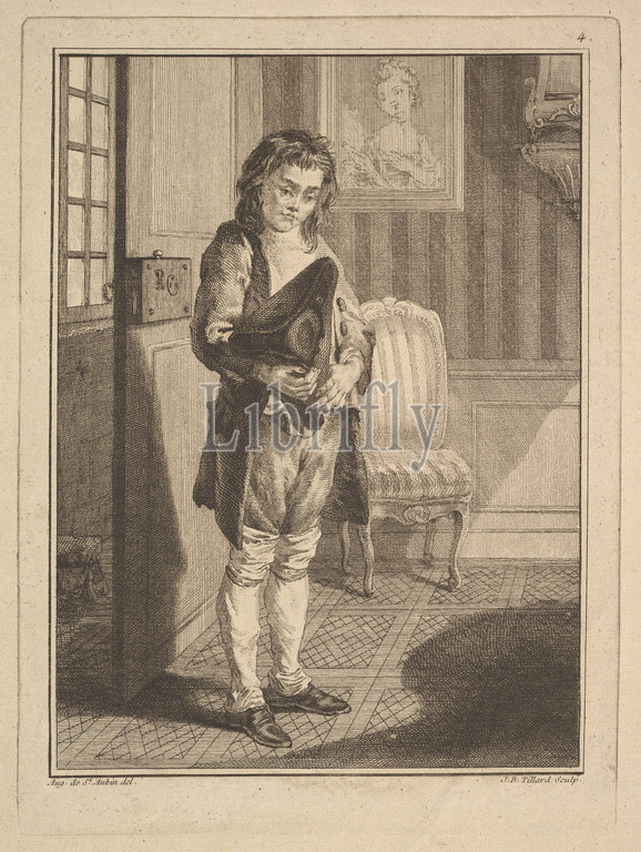 Décrotteur (Shoe Shiner), from Mes gens, ou Les commissionnaires ultramontains au service de qui veut le payer (Servants for Public Hire), 1766–70, Etching and engraving; second state of two (Bocher), Sheet: 13 11/16 × 10 7/16 in. (34.7 × 26.5 cm), Prints, Jean-Baptiste Tillard (French, Paris 1740–1813 Paris), After Augustin de Saint-Aubin (French, Paris 1736–1807 Paris)