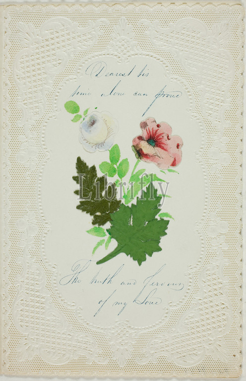 Dearest ‘Tis Time Alone (valentine), c. 1840, George Meek, English, 19th century, England, Collaged elements and watercolor, with pen and blue ink on cut and embossed ivory wove paper, 142 × 93 mm (folded sheet)