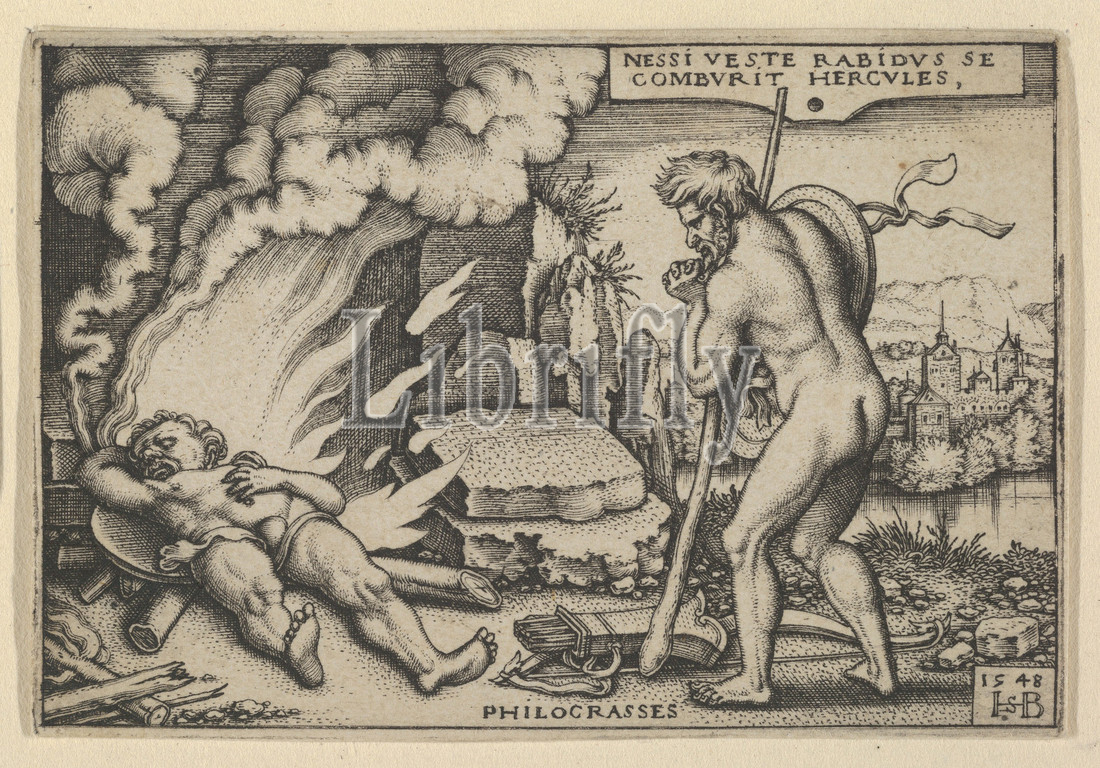 The Death of Hercules from The Labors of Hercules, Engraving, Sheet: 2 1/8 x 3 1/8 in. (5.4 x 7.9 cm), Prints, Sebald Beham (German, Nuremberg 1500–1550 Frankfurt)